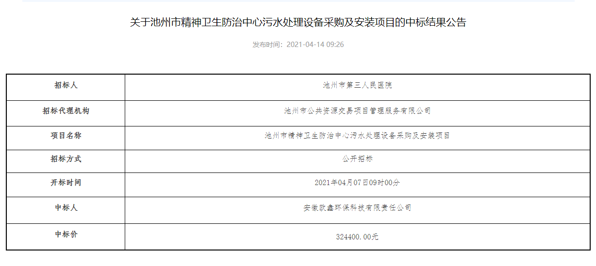 成功中標!池州市衛(wèi)生防治中心污水處理項目