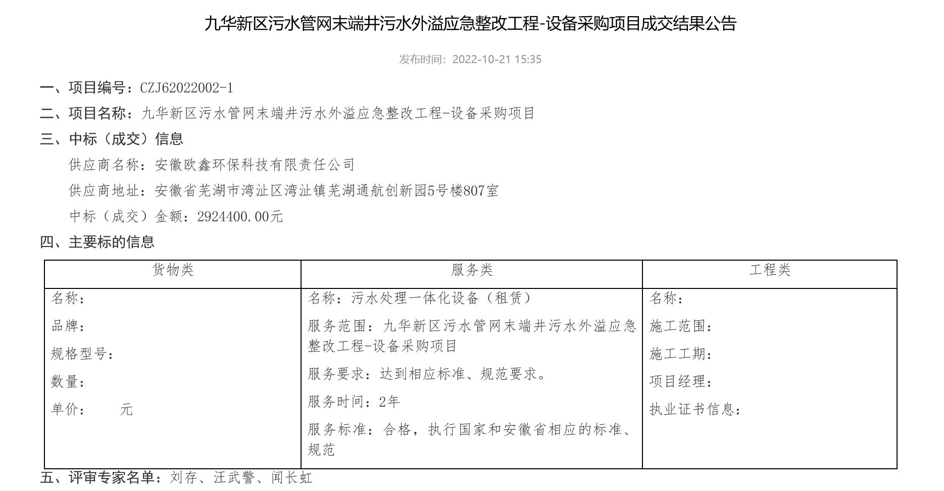 關(guān)鍵詞:成功,中標(biāo),九華,新區(qū),污水,應(yīng)急,整改,